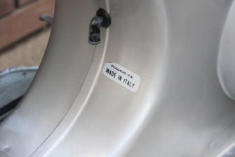 | 当時の輸入元である成川商会のステッカーもオリジナルペイントを感じさせる部分と言えます。 『MADE IN ITALY』のステッカーも残っており、やはりベスパはイタリア製♪ |